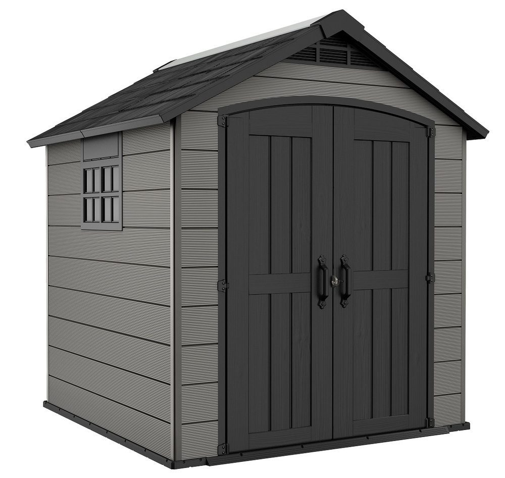 Dotaz na produkt Na splátky ještě dnesBezúdržbový domek PREMIER má robustní konstrukci a je vyroben z pevných, dvojitých, plastových stěn. Je také vybaven pevnou designovou střechou, širokými dvojitými dveřmi a podlahou pro náročné použití s nosností 150kg na m2. Domek je ideální nejen na uschovávání nářadí a zahradních doplňků, ale také na sekačku nebo grill. Jeho hlavní výhody jsou stabilní, zpevněná ocelová konstrukce, pevná střecha a široké dvojité dveře. Všechny domky Keter jsou vybaveny vysoce odolnou podlahou. Zatížení střechy až 100 kg/m2, odolnost vůči větru do 145 km/hod (platí v případě ukotvení). výhody:- Dvojitá stěna odolná proti povětrnostním vlivům s ocelovou výztuží- Široké dvojité dveře, viktoriánské okno a světlíky- Vysoká podlaha- Robustní strop- Vysoký strop- Zajišťovací systém z ušlechtilé oceli (zámek není součástí dodávky)