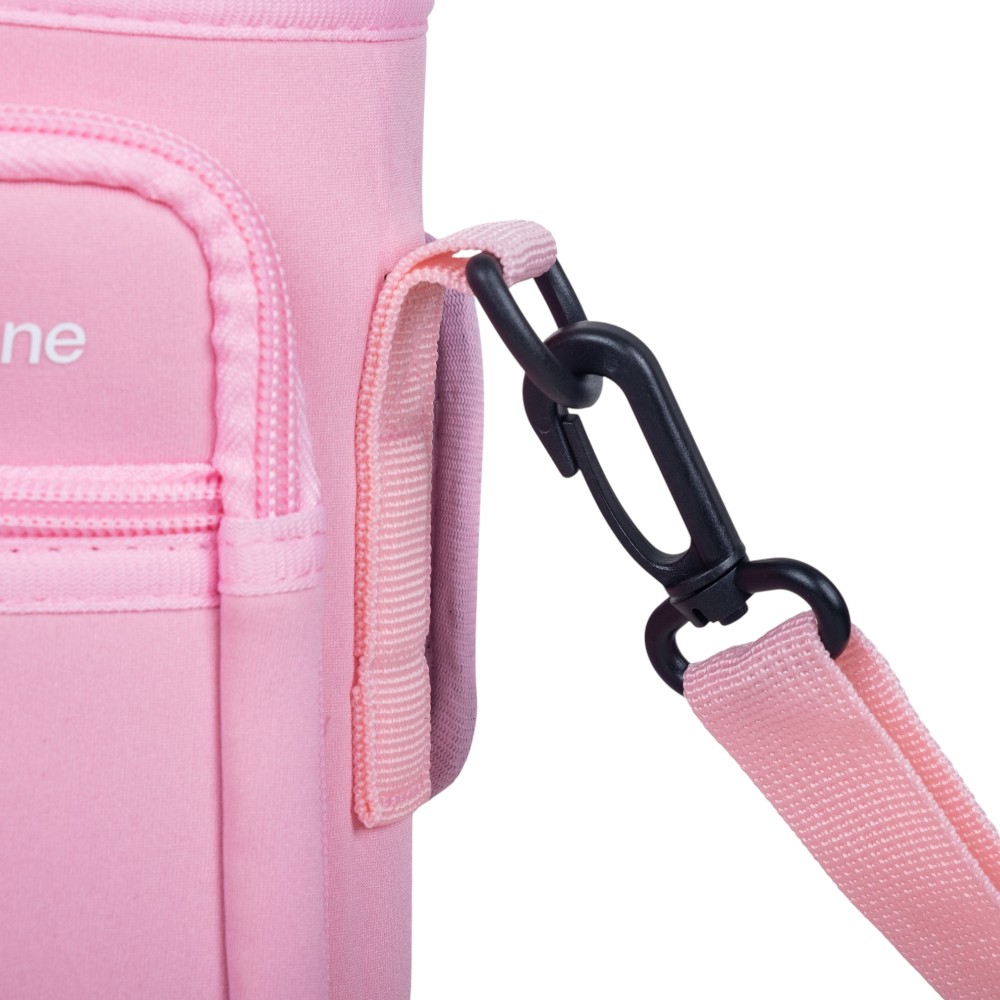 Taška je vyrobena z odolného a lehkého neoprenu, který dobře tlumí nárazy a přizpůsobí se tvaru nádoby. Díky nastavitelnému popruhu ji můžete nosit pohodlně přes rameno nebo křížem přes tělo, takže máte volné ruce například při procházce, cestování nebo sportovních aktivitách.