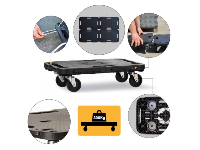 Dotaz na produktART PLAST přepravní plošina s nosností do 300 kg určená k přesouvání či stěhování rozličných předmětů. Díky své vysoké nosnosti vhodná i na přemisťování stavebních materiálů. Najde své využití jak v domácnosti, tak i v dílně či garáži. Plošina je optařena 4 otočnými kolečky a madly na 4 stranách pro lepší manipulaci.