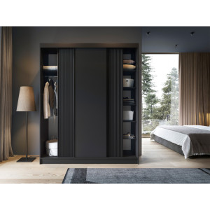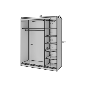 Dotaz na produkt Na splátky ještě dnesPosuvná šatní skříň Prescco s rozměry hloubky 60 cm, šířky 180 cm a výšky 220 cm je praktickým a elegantním řešením pro úložný prostor, které efektivně optimalizuje prostor ve vašem interiéru. Tato funkční šatní skříň byla pečlivě navržena tak, aby splňovala vaše organizační potřeby a zároveň si zachovala moderní vzhled. Konstrukce šatní skříně je založena na vysoce kvalitních materiálech. Korpus skříně je vyroben z odolné 16 mm silné MDF desky, která zajišťuje stabilitu a pevnost. Hrana ABS na okrajích korpusu poskytuje dodatečnou ochranu před potenciálním poškozením a zachovává estetický vzhled skříně. Černá barva dodává skříni moderní charakter, který dobře ladí s různými styly interiéru. Tři páry posuvných dveří umožňují snadný přístup do vnitřku skříně a zároveň šetří místo v místnosti. Sada obsahuje šest polic, z nichž každá unese maximální zatížení 10 kg. Jedná se o praktické řešení pro uložení oblečení, doplňků a dalších drobných předmětů. Dodané tyče navíc umožňují pohodlné zavěšení oblečení, což přispívá k udržení pořádku a čistoty. Nohy vysoké 0,5 cm z odolného černého plastu a stejné barevné schéma posuvné lišty zajišťují stabilitu a usnadňují snadný pohyb šatní skříně. Posuvná šatní skříň Prescco ve verzi bez zrcadla je vynikajícím řešením pro ty, kteří preferují jednoduchost a eleganci. Bez ohledu na to, zda si vyberete verzi se zrcadlem nebo bez něj, tato šatní skříň poskytne nejen efektivní úložné řešení, ale také stylový vzhled a pořádek ve vašem interiéru. Materiál: Černá Šířka: 180 Výška: 220 Hloubka: 60 Styl: Moderní Základní barva: Černá Počet balení: 3 Celková hmotnost: 140 Požadovaná montáž pro dospělé: Ano Úroveň montáže: Částečně smontováno Orientace: Nevztahuje se Záruka: 2 roky Země původu: Polsko Extra balení: ne