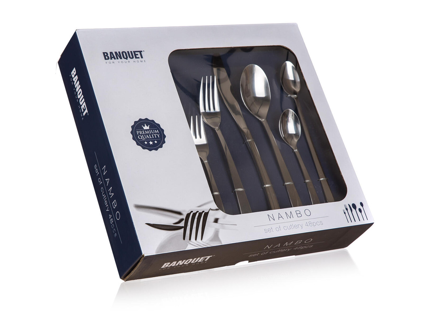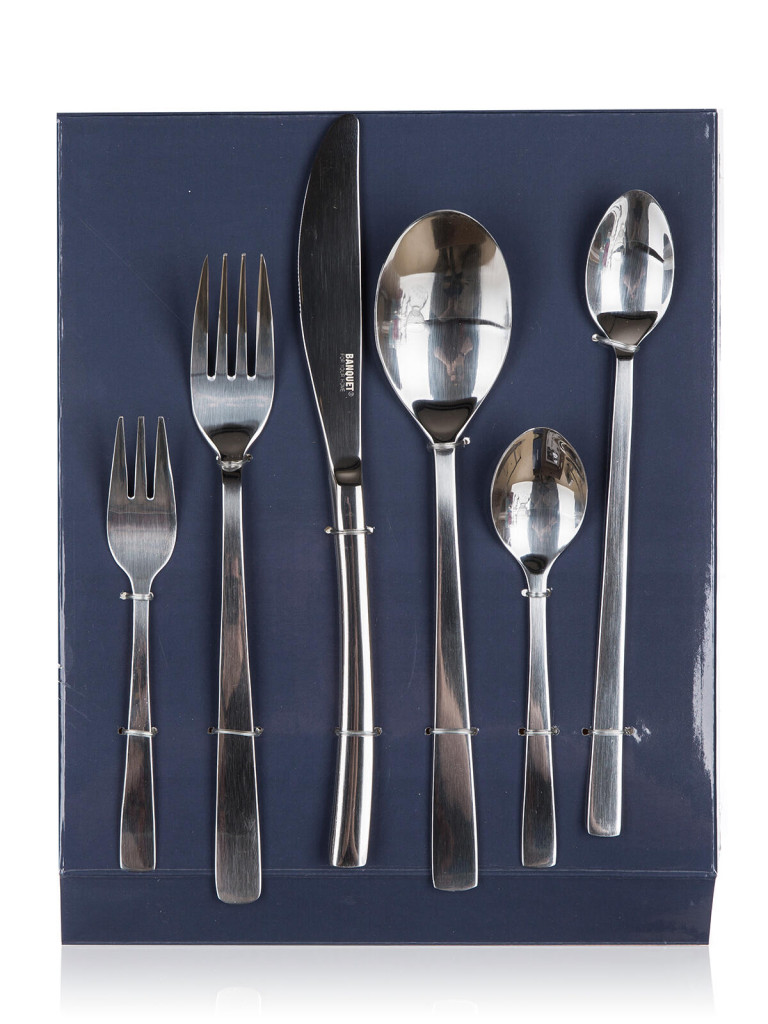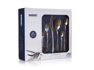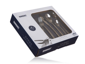 Dotaz na produkt Na splátky ještě dnesSada nerezových příborů NAMBO, 48 ks obsahuje 8x jídelní nůž, 8x jídelní vidličku, 8x jídelní lžíci, 8 x čajovou lžičku, 8x desertní vidličku, 8x latte lžičku. Materiál nerezová ocel 18/0.