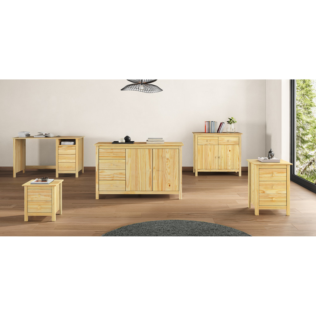 Dotaz na produkt Na splátky ještě dnesmateriál masiv borovice, lakované provedení 2 zásuvky s kovovými pojezdy, 2 plné dveře, 1 police vhodný doplněk nástavec 8096
