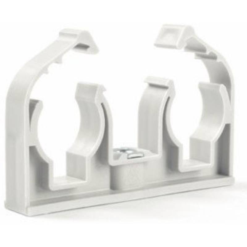 Příchytka D 2 x 28 s klipem a maticí M6 bílá