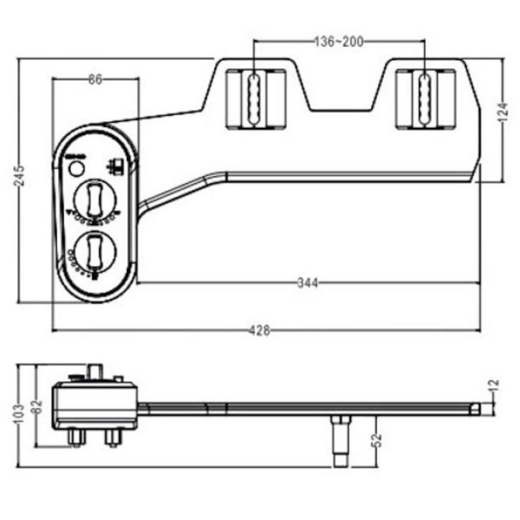 - Přídavný bidet lze dodatečně instalovat pod stávající sedátko, pro téměř všechny typy WC mís. Rozteč uchycení je 136 - 200 mm.