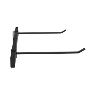 Hák jednoduše připevníte ke stojanu StorageRack pomocí montážní sady, která je součásti balení. Díky nastavitelné vzdálenosti háků se lehce přizpůsobí různým druhům podložek s otvory pro zavěšení a naložit ho můžete opravdu do plna. Jeho kvalitní ocelové provedení unese až 80 kg.
