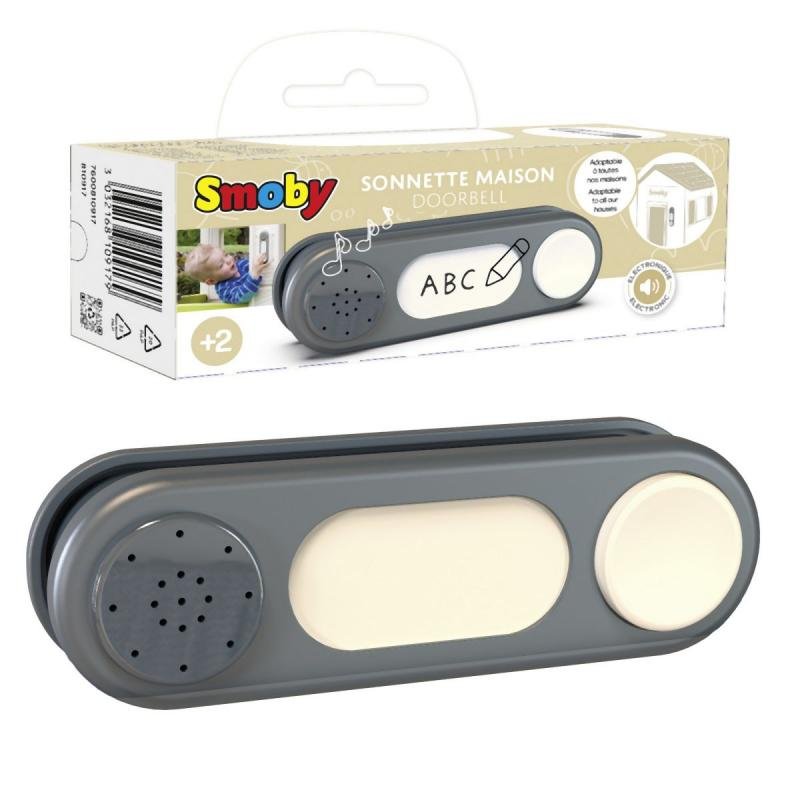 Dotaz na produktMáte doma dětský zahradní domek Smoby? Pořiďte k němu plastový elektronický zvonek, který náhodně přehrává 3 různé zvuky. Vaše děti se tak mohou těšit na zvuk klasického zvonku, štěkot psa a mňoukání kočky. Je kompatibilní s modely Pretty, Nature, Neo Jura Lodge, My Neo House a dalšími rozšiřitelnými domečky značky Smoby. Napájíte ho pomocí svou AAA baterií (nejsou součástí balení). Hračka je vhodná pro děti od 3 let.