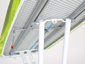 Prkno je opatřeno žehlící kovovou deskou Mash, která dobře propouští páru a prádlo přitom zůstane suché.