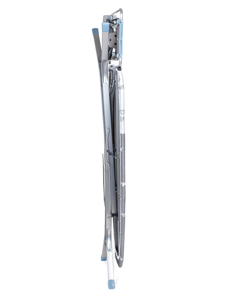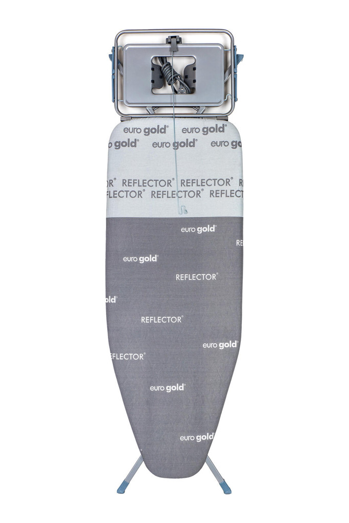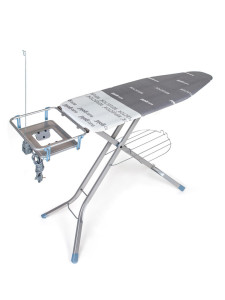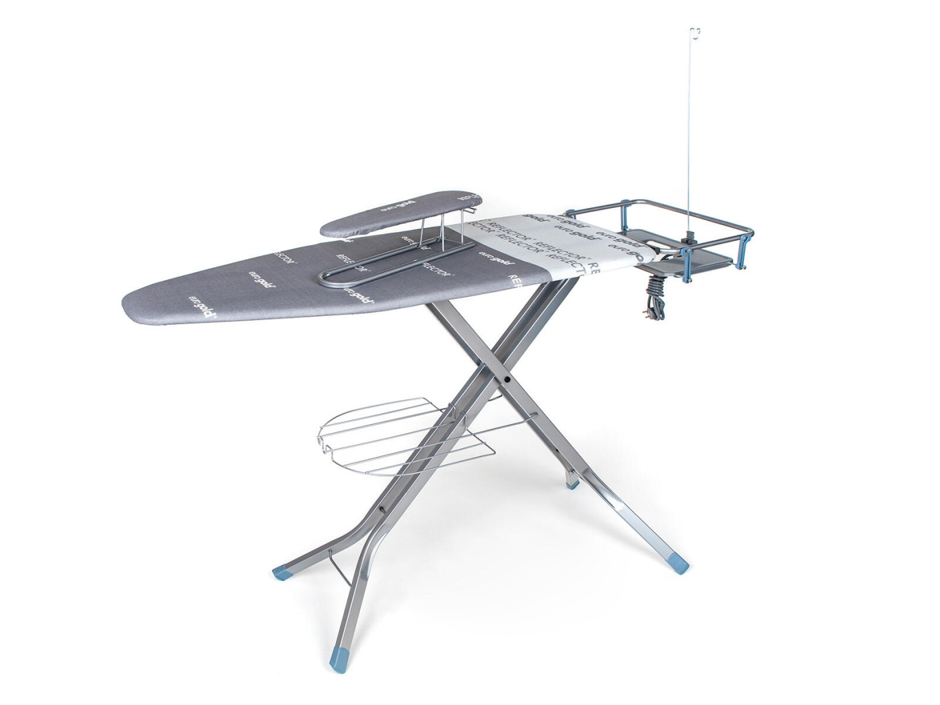 Žehlící prkno je vybaveno integrovanou elektrickou zásuvkou, odkládacím prostorem pro parní žehličku a plochou pro vyžehlené prádlo.