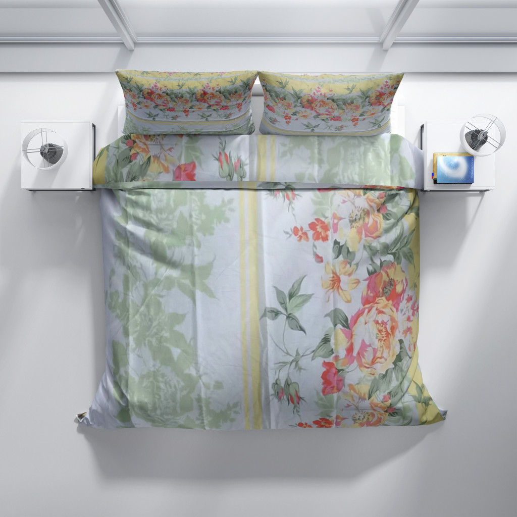 Dotaz na produktProdloužené bavlněné povlečení - Květy s listy žluté:
