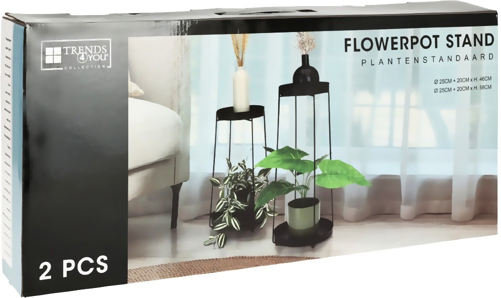 Dotaz na produktStojan na květináče sada 2 ks malý pr. 270XH460MM, velký pr. 270XH580MM