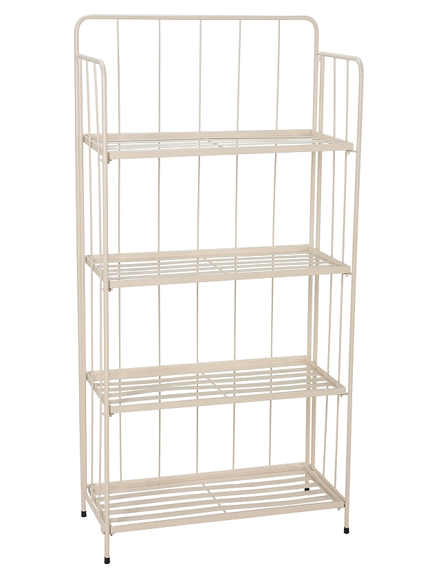 Dotaz na produkt Na splátky ještě dnes- prostorný květinový regál vhodný do interiéru i exteriéru- vyrobený z kovu s práškovým nástřikem- tento ochranný nástřik je odolný proti korozi a zajišťuje dlouhou životnost- pevná konstrukce na čtyřech nohách stojí stabilně a nekymácí se- čtyři prostorné police, každá je sklopná- stojan lze kompletně složit na plocho, což usnadňuje přemisťování nebo uskladnění- ideální jako stojan na bylinky, květiny nebo multifunkční police na zahradu, balkón i do bytu- rozměry: 58 x 27 x výška 118 cm- barva: béžová- značka: PROGARDEN