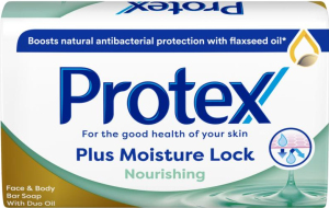 Dotaz na produktVyživující mýdlo Protex® Plus Moisture Lock pro suchou pokožku chrání před 99,9 % mikrobů s duo olejem, které pomáhá posílit přirozenou schopnost pokožky chránit se před choroboplodnými zárodky a zároveň udržovat přirozenou vlhkost pokožky. Obsahuje lněný olej, který pomáhá zvýšit přirozenou ochranu pokožky proti bakteriím.