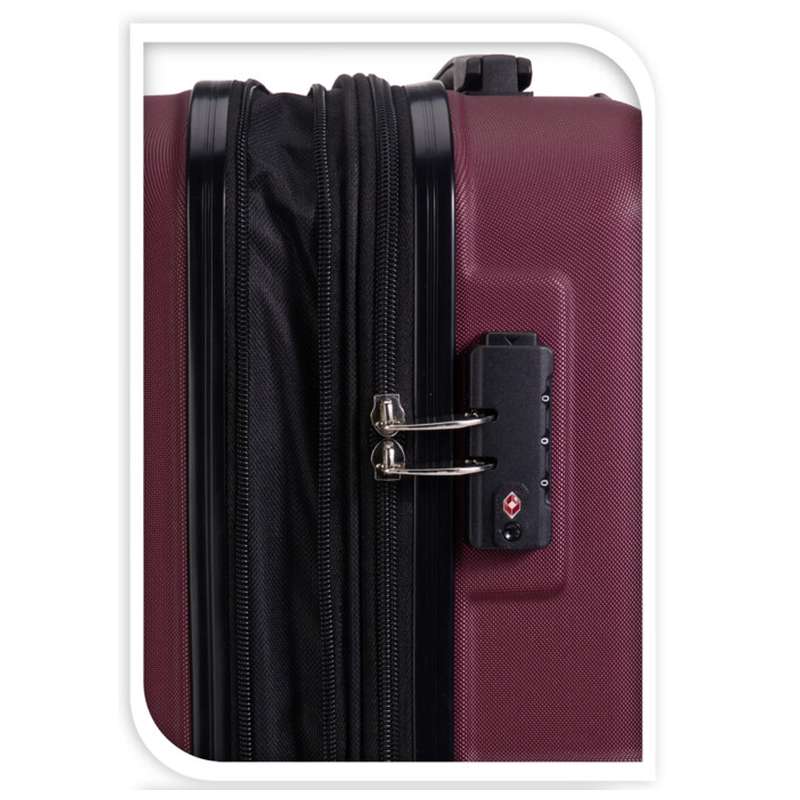 Vychutnejte si cestování ve stylu s touto luxusní sadou dvou cestovních kufrů v odstínu bordó s elegantními černými detaily. Kufry jsou vyrobeny z odolného ABS materiálu, který zajišťuje maximální ochranu vašich věcí.