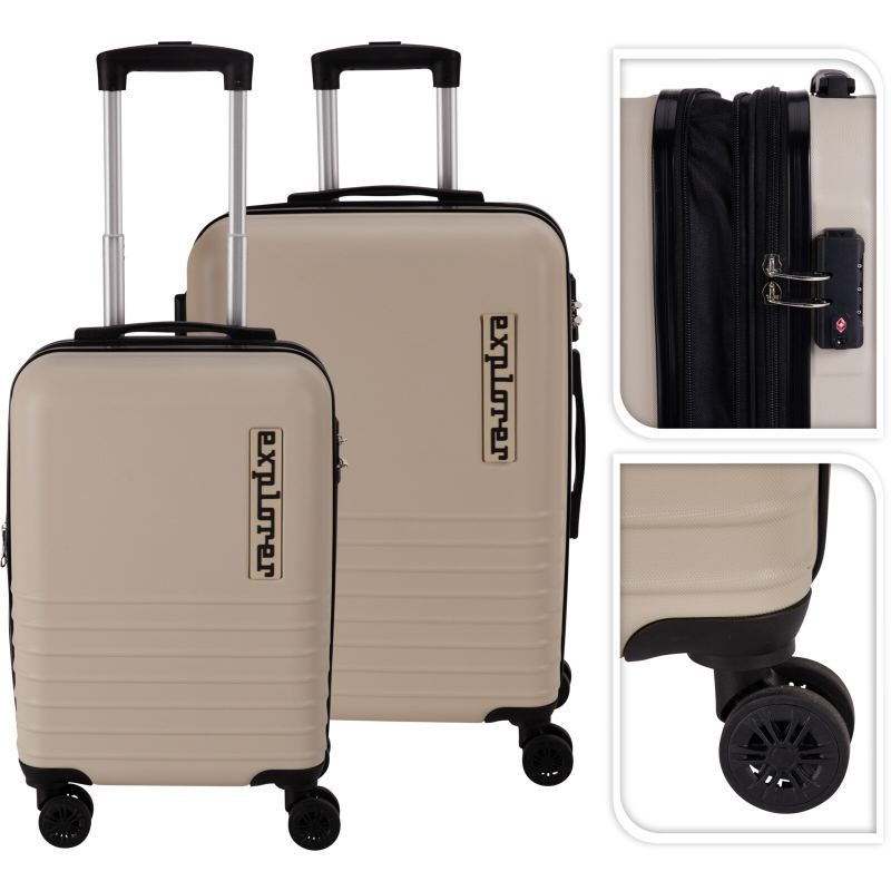 Vychutnejte si cestování ve stylu s touto luxusní sadou dvou cestovních kufrů v odstínu tmavě šedé s elegantními černými detaily. Kufry jsou vyrobeny z odolného ABS materiálu, který zajišťuje maximální ochranu vašich věcí.