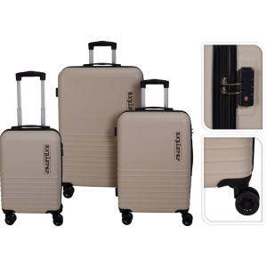 Dotaz na produkt Na splátky ještě dnesObjevte perfektní sadu kufrů pro vaše cestovatelské dobrodružství. Sada kufrů Explorer, vyrobená z odolného ABS plastu, je ideální volbou pro každého, kdo hledá styl, bezpečnost a praktické řešení pro své cesty. Díky svému elegantnímu designu v barvách bílé a béžové, snadno rozpoznáte svůj zavazadlový prostor, ať už se vydáte kamkoliv.