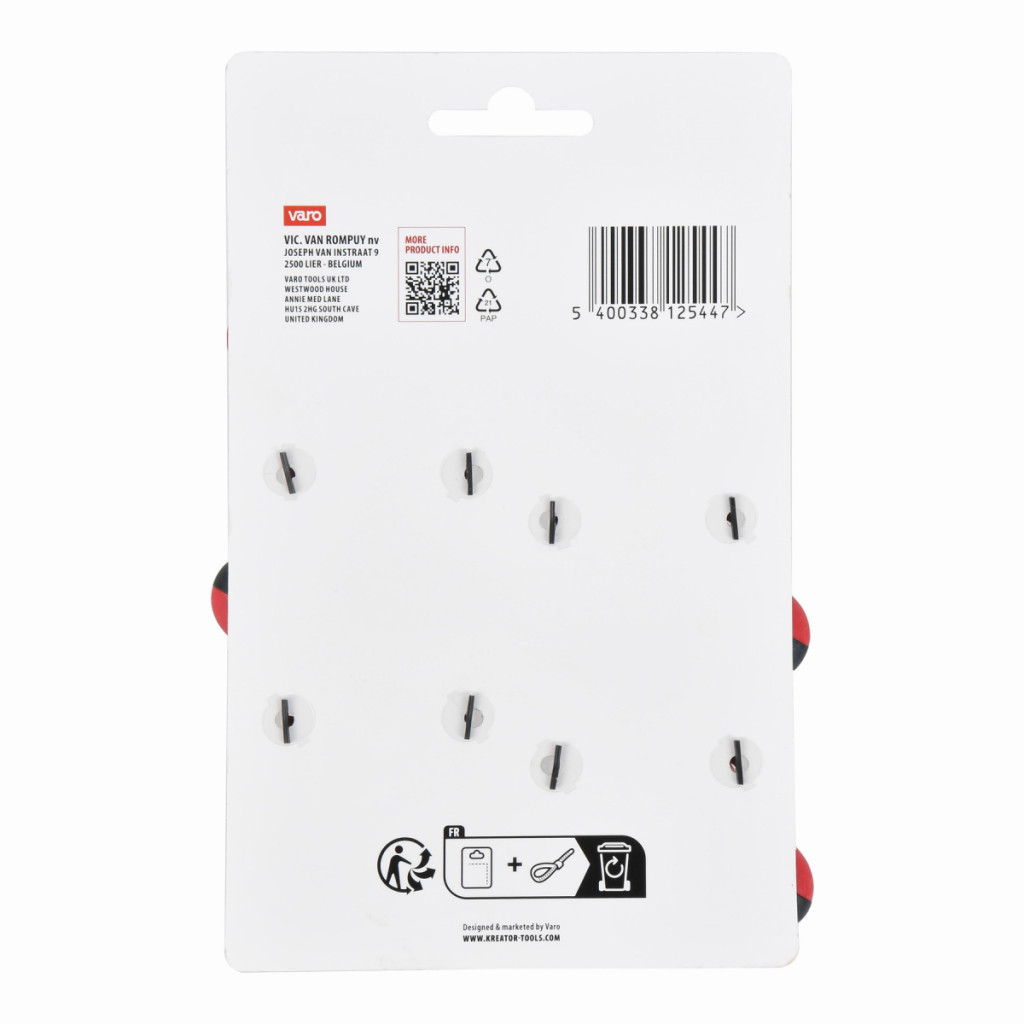 Dotaz na produktPoužijte tuto praktickou sadu 4 pružinových svěrek KRTH40601 z naší řady Kreator vyrobených z vyztuženého nylonu k zajištění předmětů o tloušťce až 38 mm, abyste je mohli spojit. Pružinové svěrky mají délku 90 mm.
