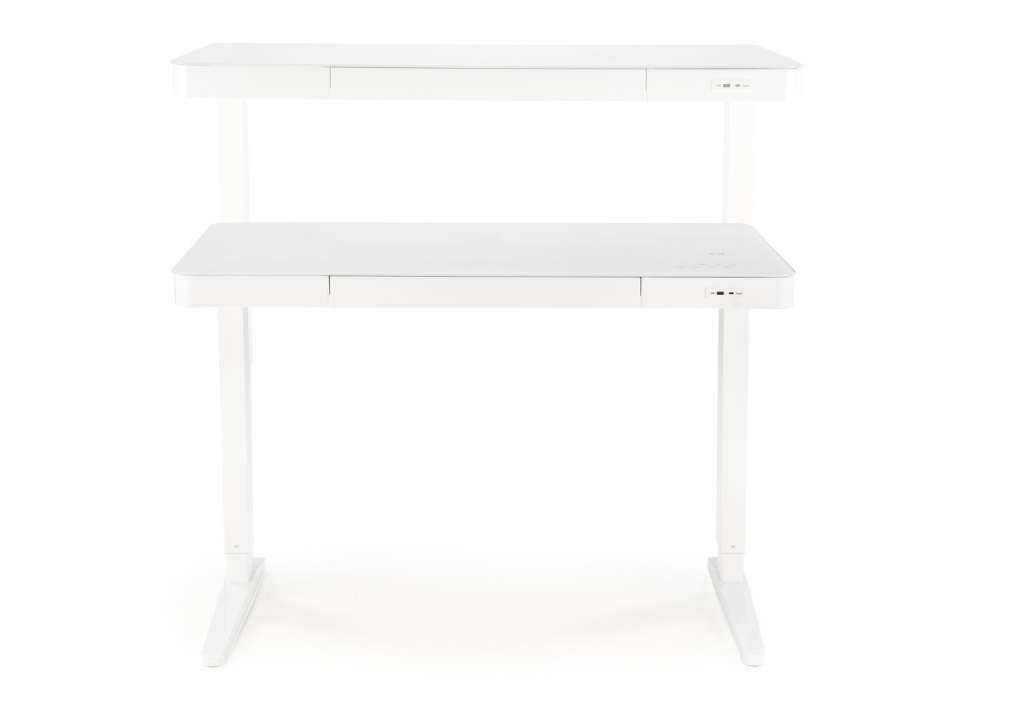 Dotaz na produkt Na splátky ještě dnesrozměry: 120/60/77-120 cm; stůl s funkcí nastavení výšky / dotykový displej / bezdrátové nabíjení / USB port, materiál: sklo / ocel s práškovým nástřikem, barva: bílá