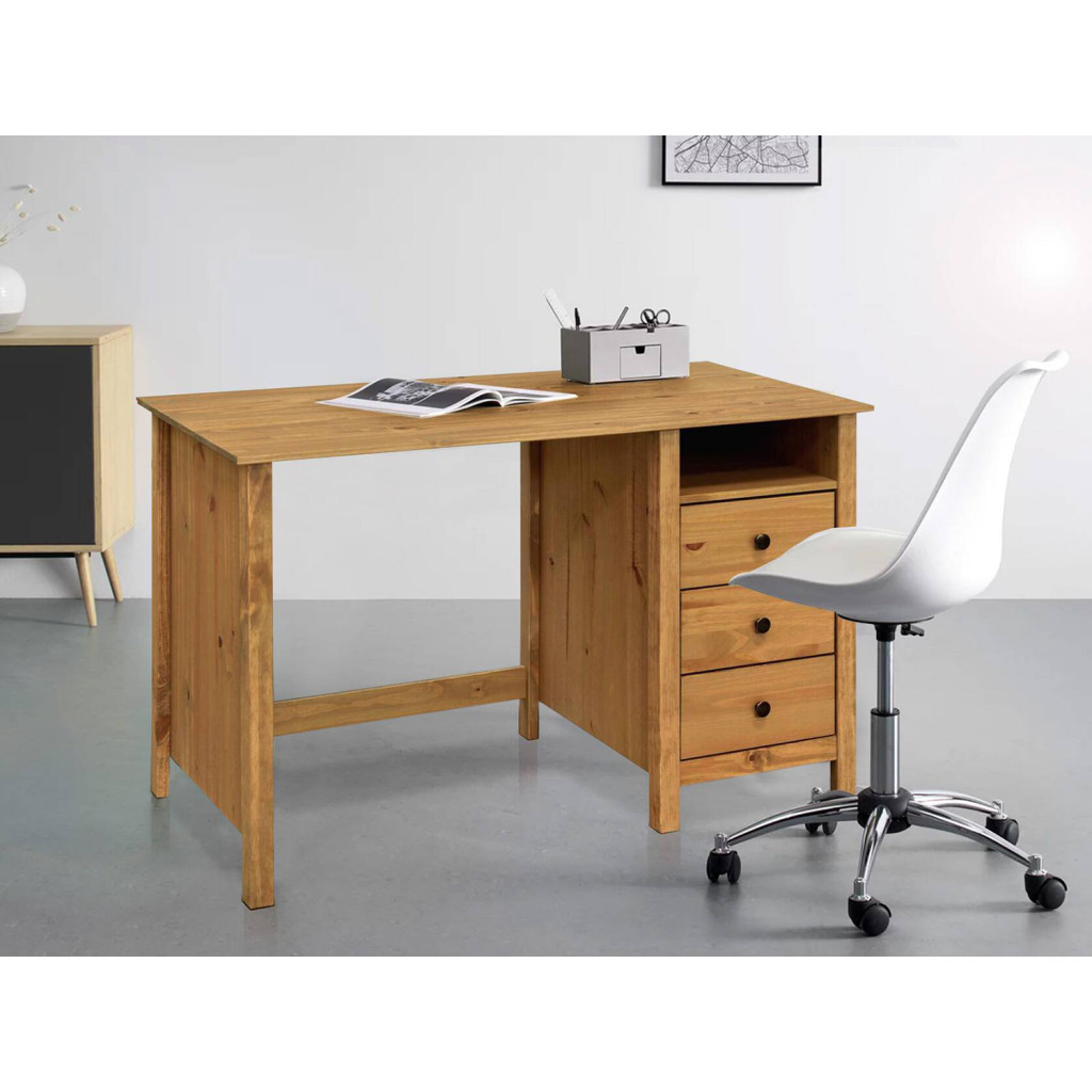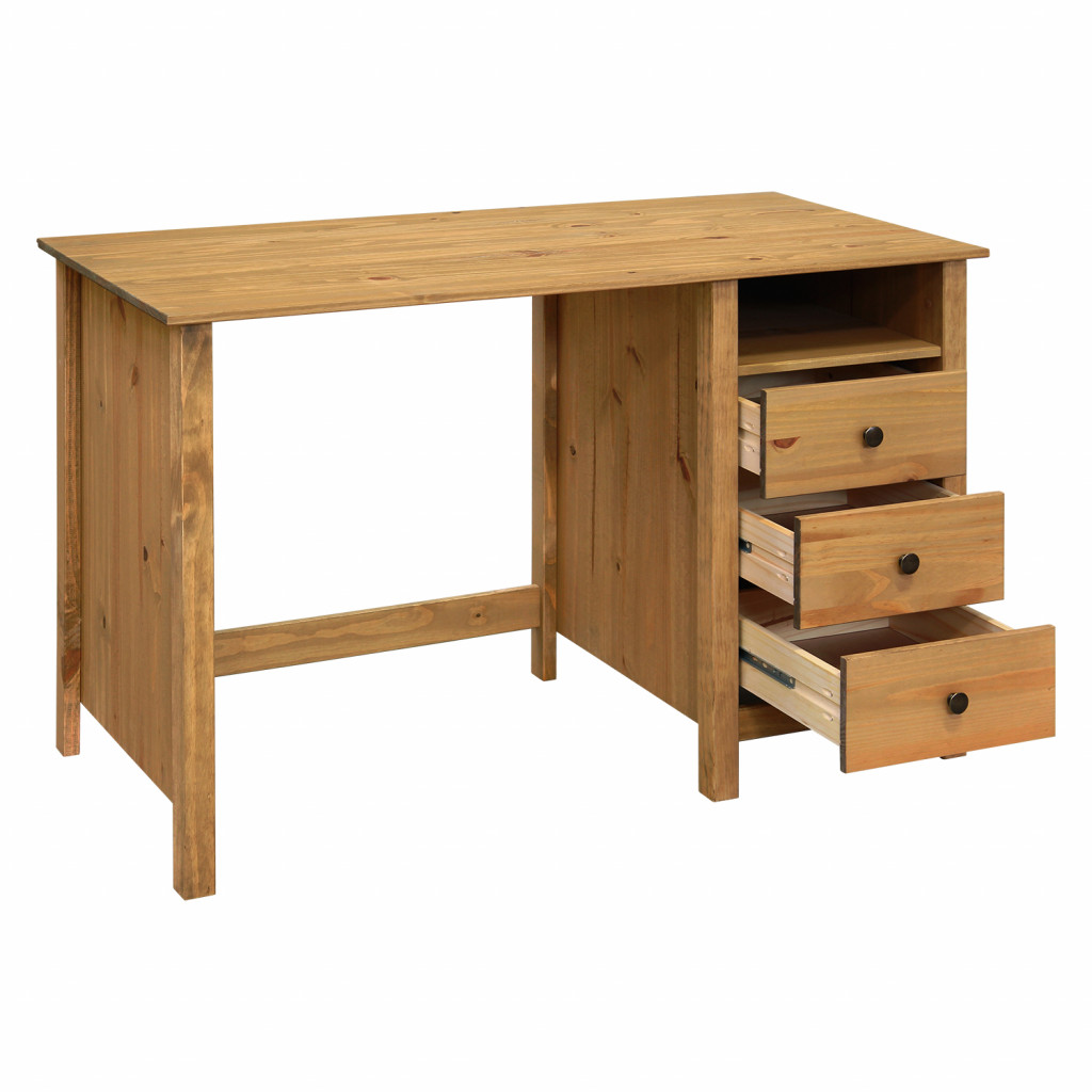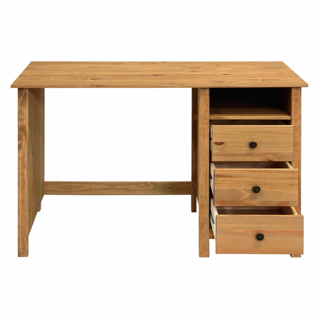 Dotaz na produkt Na splátky ještě dnesmateriál masiv borovice voskovaná v medovém odstínu kovové úchytky v barevném provedení černěná mosaz 3 zásuvky s kovovými pojezdy, 1 police