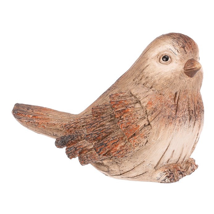 Dotaz na produktZahradní figurka v podobě ptáčka svým provedením krásně zapadne do vnějšího přírodního prostředí, čímž vytvoříte hravě krásné lesní zátiší. Ptáček v béžovo-hnědých odstínech je vyroben z polyresinu, ale vypadá jako by byl právě ze dřeva. Konce jeho křídel jsou tvořeny jakoby drobnými nasekanými částmi větviček a zbytek těla má charakteristickou dřevěnou texturu.