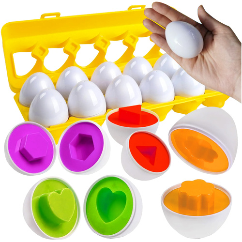 vzdělávací hračka – sada obsahuje 12 vajíček různých tvarů a barev, která dítě spojuje do dvojic, rozvíjí tak fantazii, pozorování a paměť
