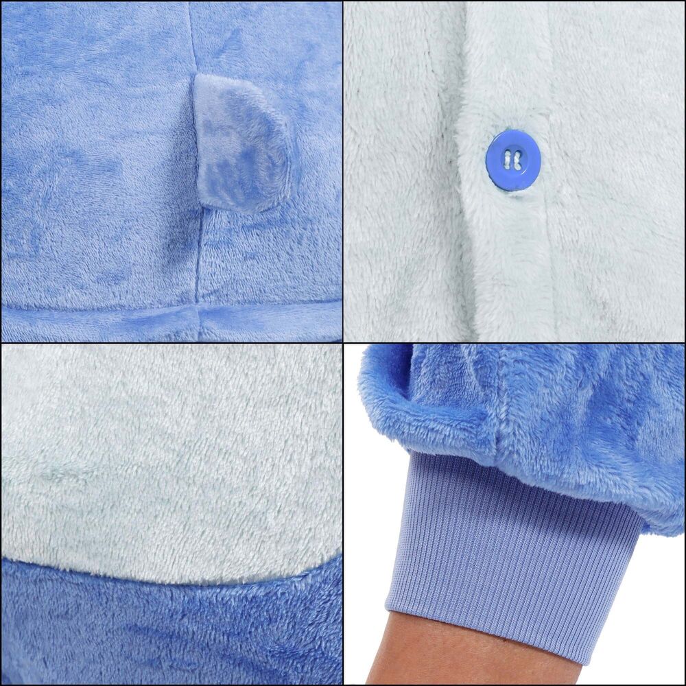 Součástí je funkční kapuce s roztomilými ušima, která dodává pyžamu originální vzhled. Praktickým detailem je skrytý zadní zip, jenž usnadňuje oblékání i svlékání. Kromě spaní lze tento overal využít také jako maškarní oblek nebo pohodlný denní oděv. Kvalitní provedení z polyesteru zaručuje snadnou údržbu a dlouhou životnost.