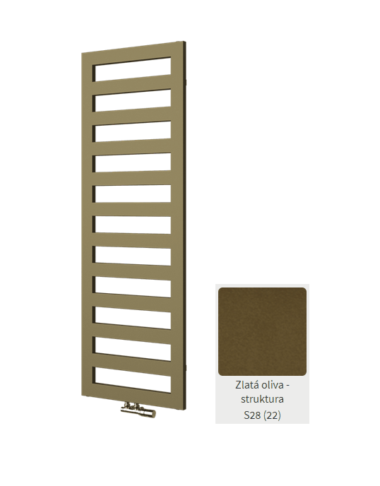 PARAMETRY:Hmotnost balení: 24,50  kgDruh výrobku: radiátor Materiál: ocel Barva popisná: zlatá oliva struktura Barva základní: ostatní lesk/mat: mat Umístění připojení: středové i krajové Objem:...