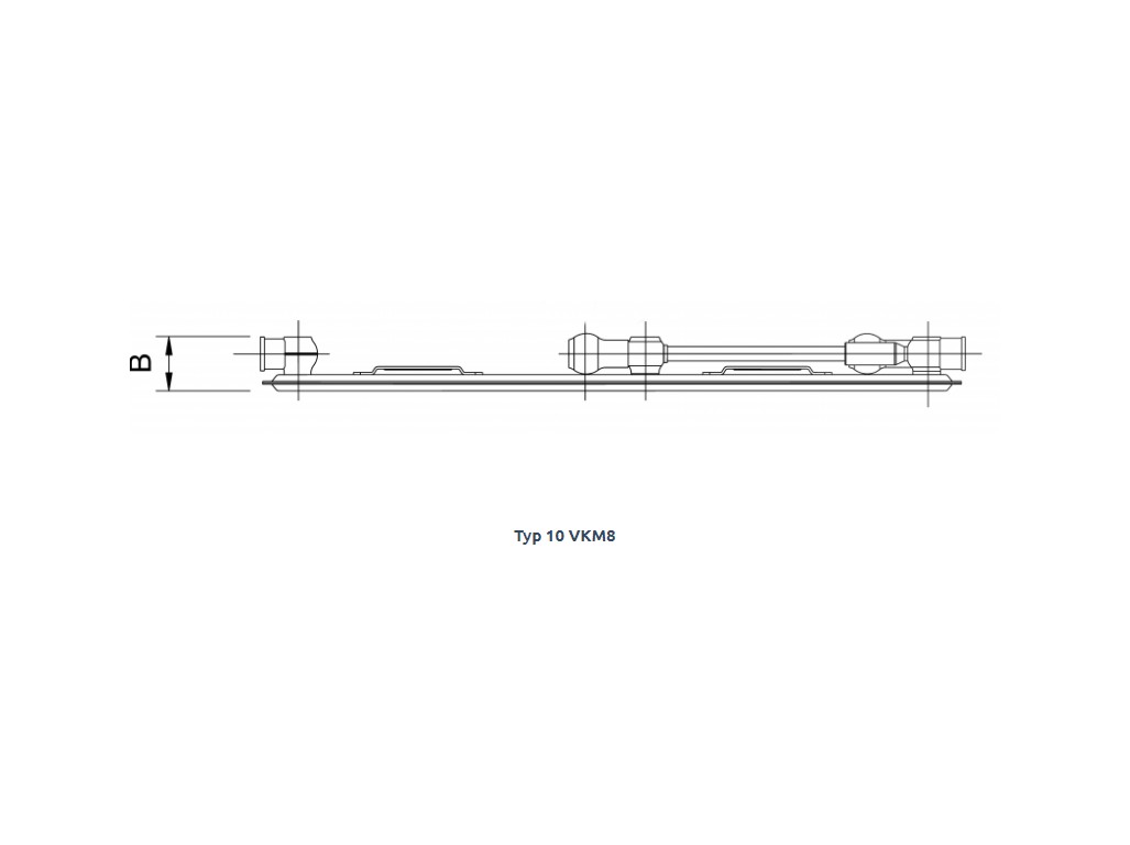 RADIK VKM8 Deskové otopné těleso se spodním středovým nebo spodním pravým připojením Model RADIK VKM8 je deskové otopné těleso v provedení VENTIL KOMPAKT, které umožňuje spodní středové nebo pravé spodní připojení na otopnou soustavu. Typy 20, 21, 22 a 33 mají jednotnou vzdálenost spodního středového připojení od stěny. Ze zadní strany jsou přivařeny dvě horní a dolní příchytky, otopná tělesa o délce 1800 mm a delší mají navař ených šest příchytek.Desková otopná tělesa RADIK VKM8 jsou svou konstrukcí určena pro moderně řešené otopné soustavy s nuceným oběhem teplonosné látky a horizontálně vedeným rozvodným potrubím pod otopným tělesem v podlaze, ve stěně nebo po stěně zakryté lištou.
