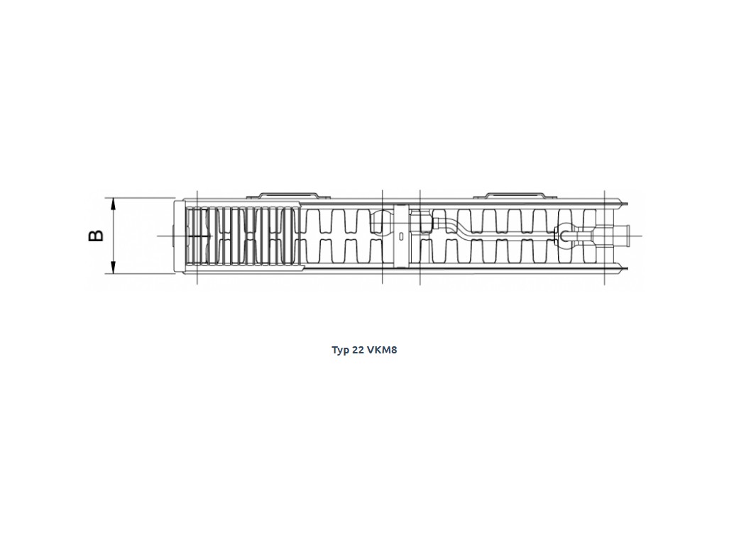 RADIK VKM8 Deskové otopné těleso se spodním středovým nebo spodním pravým připojením Model RADIK VKM8 je deskové otopné těleso v provedení VENTIL KOMPAKT, které umožňuje spodní středové nebo pravé spodní připojení na otopnou soustavu. Typy 20, 21, 22 a 33 mají jednotnou vzdálenost spodního středového připojení od stěny. Ze zadní strany jsou přivařeny dvě horní a dolní příchytky, otopná tělesa o délce 1800 mm a delší mají navař ených šest příchytek.Desková otopná tělesa RADIK VKM8 jsou svou konstrukcí určena pro moderně řešené otopné soustavy s nuceným oběhem teplonosné látky a horizontálně vedeným rozvodným potrubím pod otopným tělesem v podlaze, ve stěně nebo po stěně zakryté lištou.