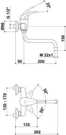 vývod 200 mmprůměr krycí rozety 66 mmpřipojení G 1/2rozteč 150 mmpovrchová úprava chromkartuše pr. 40 mmaerátor M22x1, vnitřní závitPARAMETRY:Montáž: nástěnnáOvládání: pákováTermostatická: nePro...