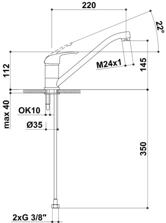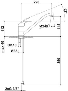 výška 112 mmvývod 220 mmkomfortní zóna 145 mmpovrchová úprava chromotočné ramínkokartuše pr. 35 mmaerator M24x1, vnější závitsada těsnění na ramínkoPARAMETRY:Montáž: stojánkováOvládání:...