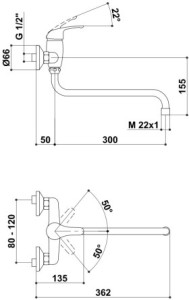 vývod 350 mmdélka ramínka 300 mmprůměr krycí rozety 66 mmrozteč baterie 100 mmpřipojení G1/2povrchová úprava chromnástěnná montážkartuše o průměru 35 mmaerátor M22x1, vnitřní závitPARAMETRY:Montáž:...