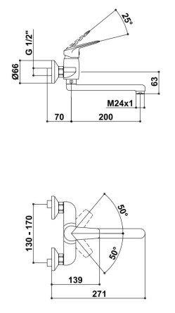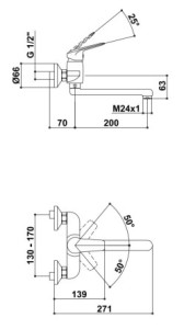 vývod 270 mmdélka ramínka 200 mmprůměr krycí rozety 66 mmrozteč 150 mmpřipojení G1/2povrchová úprava chromnástěnná montážploché výtokové ramínkokartuše o průměru 35 mmaerátor M24x1, vnitřní...