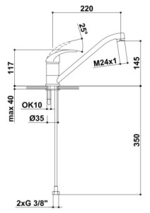 vývod 220 mmkomfortní zóna 145 mmkeramická kartuše pr. 35 mmpovrchová úprava chrompákové ovládáníotočné ramínkosada těsnění na otočné ramínkoflexi hadice, délka 35 cmaerator M24x1, vnější...
