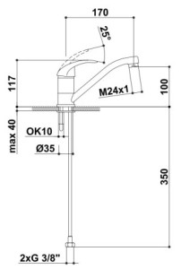 vývod 170 mmkomfortní zóna 100 mmkeramická kartuše pr. 35 mmpovrchová úprava chrompákové ovládáníotočné ramínkosada těsnění na otočné ramínkoflexi hadice, délka 35 cmaerator M24x1, vnější...