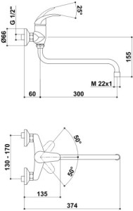 vývod 360 mmdélka ramínka 300 mmprůměr krycí rozety 66 mmrozteč 150 mmpřipojení G1/2povrchová úprava chromnástěnná montážotočné výtokové ramínkokartuše o průměru 35 mmaerátor M22x1PARAMETRY:Montáž:...
