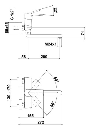 vývod 258 mmdélka ramínka 200 mmrozměr krycí rozety 65x65 mmrozteč 150 mmpřipojení G1/2povrchová úprava chromnástěnná montážploché výtokové ramínkokartuše o průměru 35 mmaerátor...