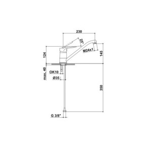 vývod 230 mmkomfortní zóna 145 mmbarva chromkartuše o průměru 40 mmaerátor M24x1,vnější závitflexi hadice M10x1 - 3/8", délka 35 cmmontáž stojánkováovládání pákovésada těsnění na otočné...