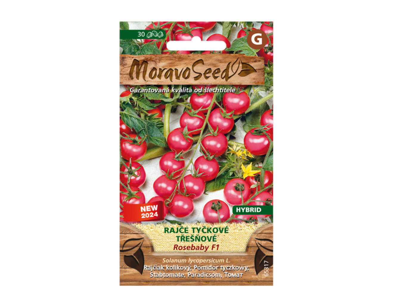 Dotaz na produktRaná hybridní odrůda tyčkového cherry rajčete s malinově tmavě růžovými plody nasládlé chuti. Na jednom vijanu dozrává 15-17 plodů o hmotnosti 17-23 g.