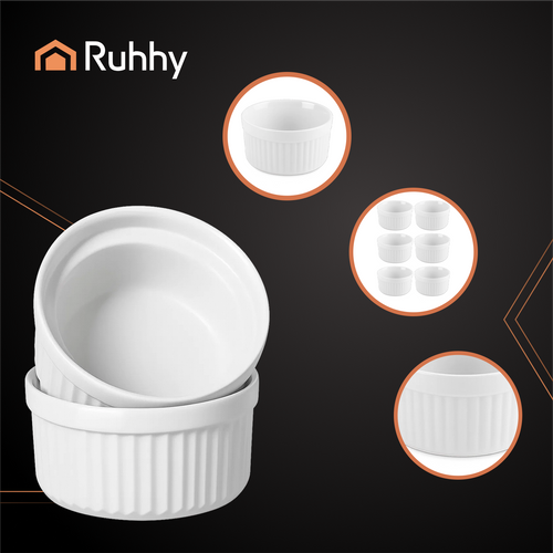 Dotaz na produktSada 6 žáruvzdorných misek RUHHY je ideálním nádobím na zapékané pokrmy, dezerty a předkrmy - na stole vypadají krásně a snadno se používají. Jsou vyrobeny z odolné keramiky, odolné vůči vysokým teplotám, a skvěle se hodí do trouby i mikrovlnné trouby. Klasický design a praktická velikost z nich dělají nenahraditelný doplněk pro každého milovníka vaření a elegantní prezentace pokrmů.