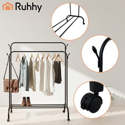 Dotaz na produktHledáte chytrý způsob, jak uspořádat šatník, chodbu nebo kancelář? Dvojitý věšák na kabáty Ruhhy poskytuje dostatek prostoru pro oblečení a doplňky a díky aretačním kolečkům jej můžete snadno přemístit, kamkoli potřebujete. Jeho robustní konstrukce s kovovým rámem a praktickou spodní policí zajišťuje, že vaše oblečení budete mít vždy po ruce a v perfektním stavu.