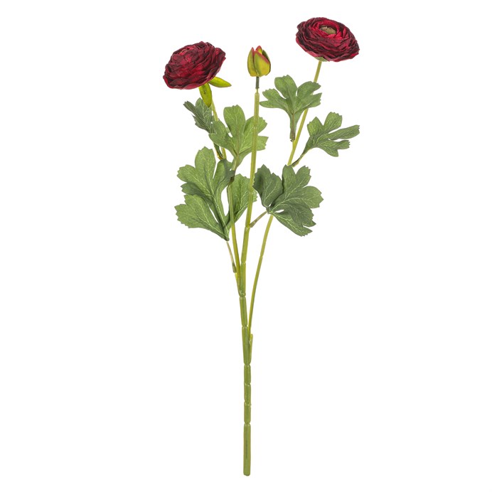 Dotaz na produktUmělý řezaný ranunculus v tmavě červeném odstínu nabízí detailní zpracování květů a listů z textilu, které věrně napodobují přírodní vzhled. Květy jsou doplněny o poupě a zelené listy s jemnou texturou, což vytváří přirozený vizuální efekt. Díky pevnému stonku je vhodný pro aranžmá ve váze nebo dekorativní kompozice v interiéru. Tmavě červená barva přináší do prostoru výrazný barevný akcent s přírodní atmosférou.