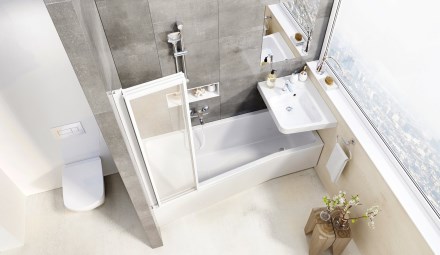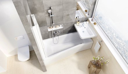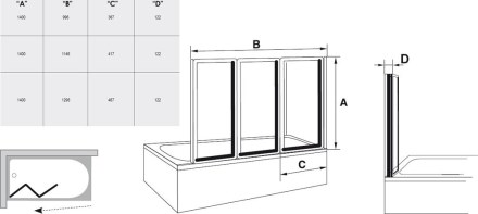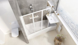 - třídílná skládací vanová zástěna na asymetrickou vanu BeHappy II a obdélníkové vany