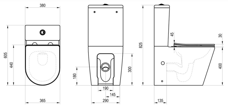rozměry 380x605x825 mm (ŠxHxV)materiál keramika s glazurou( včetně zadní strany)barevné provedení bíláRimOff (technologie oplachu mísy bez klasického lemu)Vario odpad - zadní/spodní připojení na...