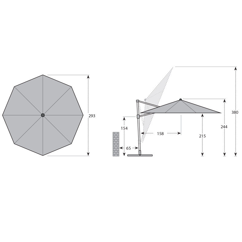 | Typ slunečníku: | S boční tyčí |