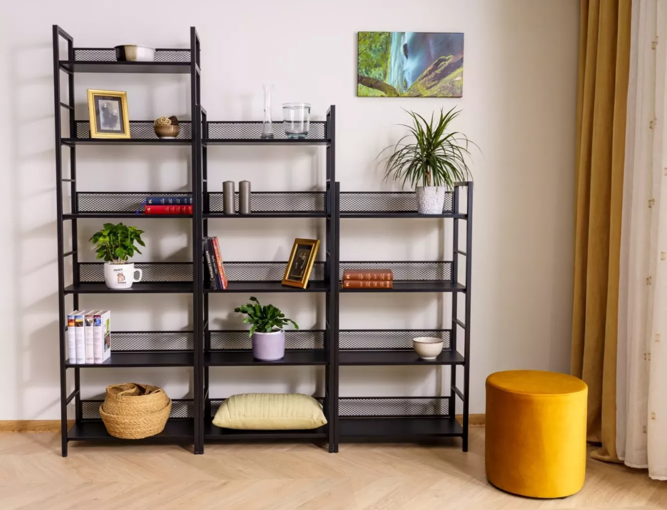 Dotaz na produkt Na splátky ještě dnesPolice, police: laminovaná deska, rám: kov, barva: černá / matná černá.