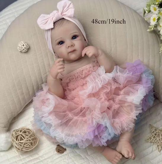 Realistická vinylová panenka Reborn Doll. Rozměry: 49 cm. Materiál: vinyl. Obsahuje: panenku, šatičky, čelenku, dudlík na magnet, lahvičku na pití a rodný list. Pro děti od 3 let, obsahuje malé části. Výrobce: Vat speed, Spain swervices@vatspeed-eu.com