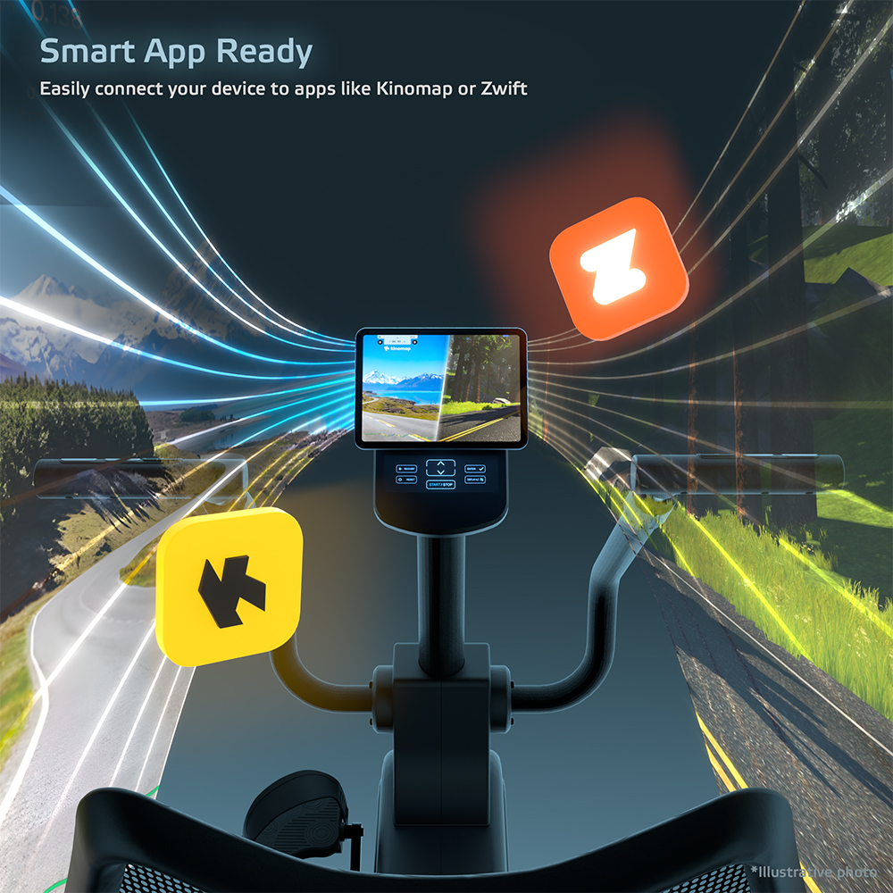 inSPORTline ZenSeat 100 není jen obyčejný recumbent – díky Bluetooth připojení ho snadno propojíte s oblíbenými aplikacemi Kinomap, Zwift nebo FitShow. Ty vám umožní trénovat virtuálně, jezdit po reálných trasách, sledovat pokroky nebo soutěžit s ostatními uživateli. A pokud si chcete trénink zpříjemnit, stačí využít držák na tablet a pustit si oblíbený film nebo hudbu.