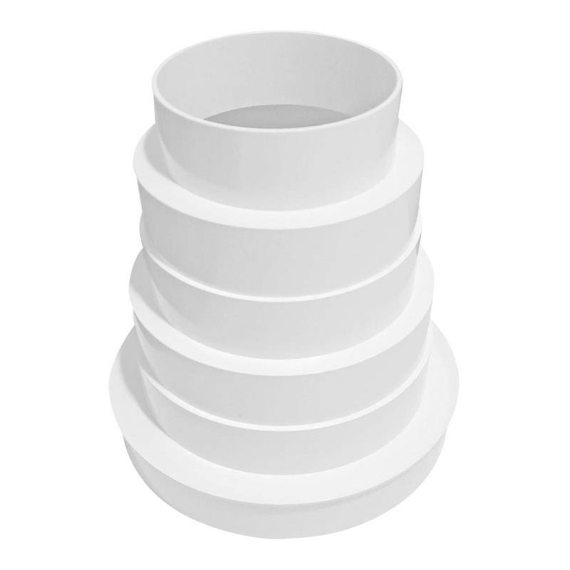 POUŽITÍ: Redukce plastová se používá pro přechod ventilačního systému z průměru 80 až na průměr 150 a obráceně. Nově je přidán rozměr 110, díky kterému lze pohodlně napojit na potrubí HT a KG...