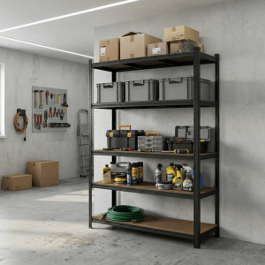 Dotaz na produktRegál o rozměrech 180 × 120 × 40 cm nabízí pět polic z MDF desek v černém lakovaném ocelovém rámu, který zajišťuje stabilitu a vyšší nosnost. Pevné police poskytují dostatek úložného prostoru pro uspořádání různých předmětů v domácnosti či kanceláři. Kovový rám je opatřen práškovým lakem, který chrání proti poškození a usnadňuje údržbu. Díky jednoduchému a funkčnímu designu se regál hodí do různých interiérů a umožňuje efektivní využití prostoru. Nosnost jednotlivých polic umožňuje uložení těžších předmětů bez obav o stabilitu.