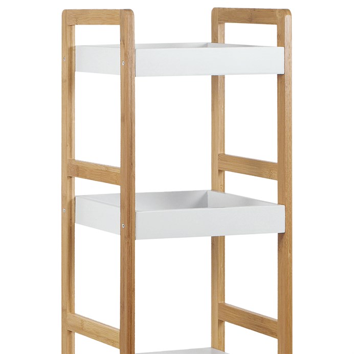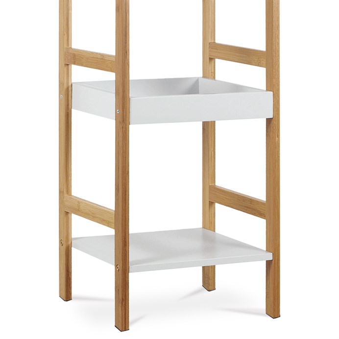 Dotaz na produktRegál s třemi policemi kombinuje pevnost masivního bambusu s bílým matným lakem MDF desek, což vytváří stabilní a zároveň esteticky příjemný kus nábytku. Bambusové bočnice v přírodním odstínu dodávají regálu přirozený vzhled a zajišťují pevnou oporu pro jednotlivé police. Dvě horní police jsou opatřeny zvýšenými okraji, které zabraňují sklouznutí uložených předmětů, zatímco spodní police je plochá a nabízí další úložný prostor. Díky nosnosti 9 kg na polici je regál vhodný pro lehčí dekorace, knihy či drobné předměty v interiéru. Kompaktní rozměry a jednoduchý design umožňují snadné umístění do různých prostorů, kde oceníte kombinaci funkčnosti a přírodního stylu.